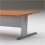Scrivania operativa versione metallica gamba a T con carter passacavi, pannello frontale legno col. alluminio.