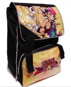 Yu-Gi-Oh Zexal Zaino estensibile scuola, tasca nella parte anteriore con zip, 2 zip laterali che una volta aperte aumentano la capienza dello zaino, tasca interna con zip, chiusura zaino con ganci, spallacci imbottiti, schienale preformato, nella parte anteriore stampato Yu-Gi-Oh-