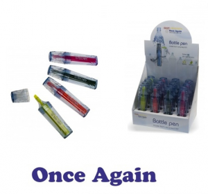 4 x colore GIALLO - ARANCIO - FUXIA - VERDE. Massimo rispetto dell'ambiente con l'utilizzo di plastica riciclata dalle bottiglie. Fusto trasparente. Espositore da 16 pezzi.
