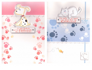 2 SOGGETTI CON BUSTA IN COORDINATO, MIS. CM 11,5X17