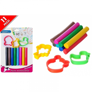 PASTA MODELLABILE 8 BARRETTE DI PLASTILINA COLORATA E 3 FORMINE
