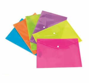 BUSTE PORTADOCUMENTI IN PPL 6 COLORI FLUO CON BOTTONE MISURA A6 CM 16X11
