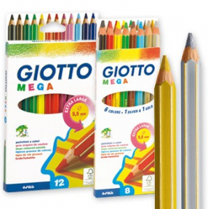 Un grande disegno ha bisogno di una grande matita con una mina gigante! 5,5 mm di super tratto per una grande riserva di colore e una possibilità creativa senza fine. Facile liberare il colore con Giotto Mega, il pastellone gigante esagonale verniciato nel colore della mina con spigoli dorati.