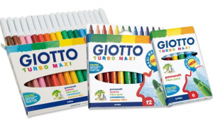 Quanti chilometri di disegni si fanno con una scatola di Giotto Turbo Maxi? Tanti! Facili da impugnare, i Giotto Turbo Maxi sono il formato gigante dei pennarelli, con la loro punta super grossa di diametro di 5 mm, per un disegno potenziato! Punta antirientro in fibra, super resistente e di lunga durata, inchiostri innocui, ottima lavabilità da mani e tessuti. Il formato è maxi anche nella protezione: cappuccio ventilato e tappo di sicurezza