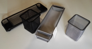 SET 2 PZ VASCHETTA PORTA CANCELLERIA PIU' PORTA PENNE IN RETE METALLICA