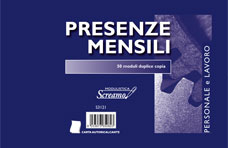 Presenze Mensili 50/50 fogli autoricalcanti a 2 copie - formato: 228x148 mm