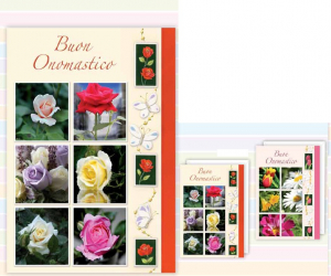 BIGLIETTI AUGURI ONOMASTICO - CARTA PATINATA - FORMATO CHIUSO 11,5x17,5 cm - 2 SOGGETTI - conf. 12 pz