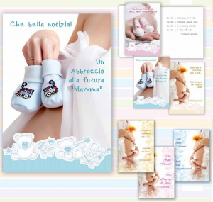 BIGLIETTI AUGURI GRAVIDANZA - CARTA PATINATA - FORMATO CHIUSO 11,5x17 cm - 6 SOGGETTI - conf. 12 pz - ULTIMO DISPONIBILE